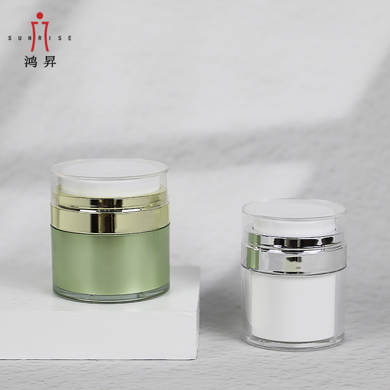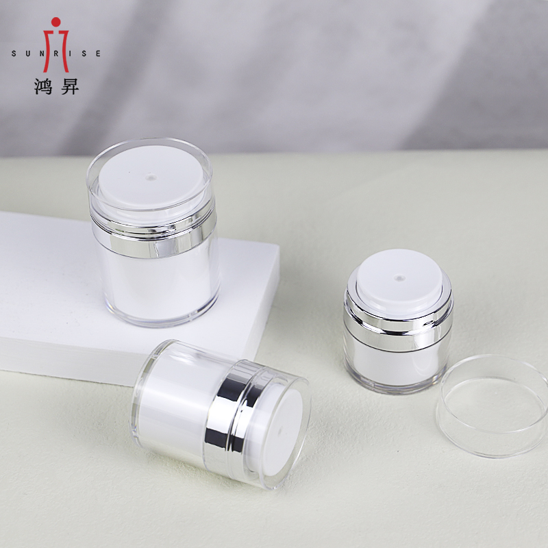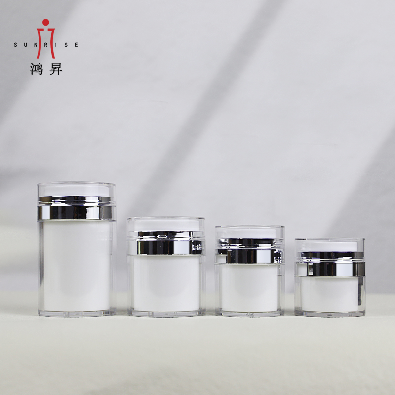HS-016C Contenitore acrilico airless 15g 30g 50g 100g Barattolo di crema cosmetica in plastica bianca nera è diventata una delle soluzioni di confezionamento preferite dai marchi di prodotti per la cura della pelle di fascia medio-alta grazie alla sua eccellente sigillatura, al controllo preciso del dosaggio e alla capacità di conservazione a lungo termine. Che si tratti di un'essenza altamente attiva, di una lozione altamente idratante o di un prodotto funzionale per la cura della pelle ad alto valore aggiunto, un flacone sottovuoto può ridurre efficacemente l'ossidazione degli ingredienti ed evitare l'inquinamento secondario, migliorando al contempo il senso tecnologico e la facilità d'uso del prodotto.